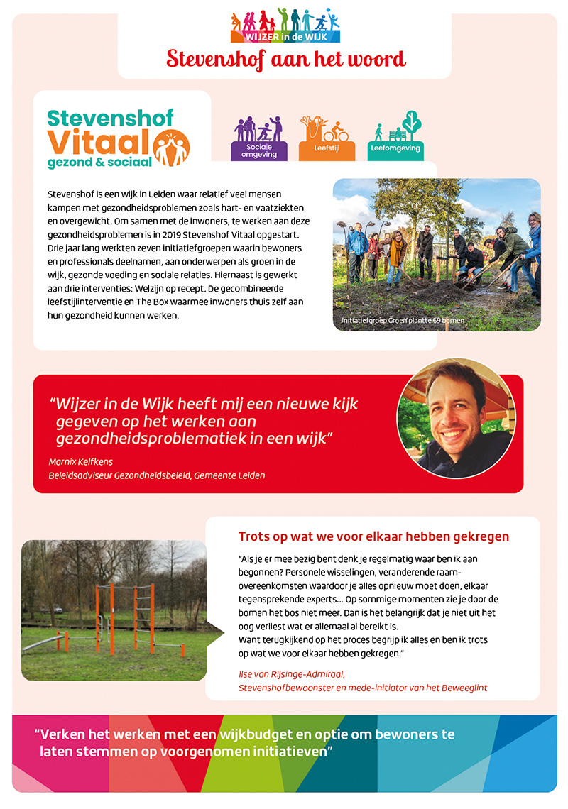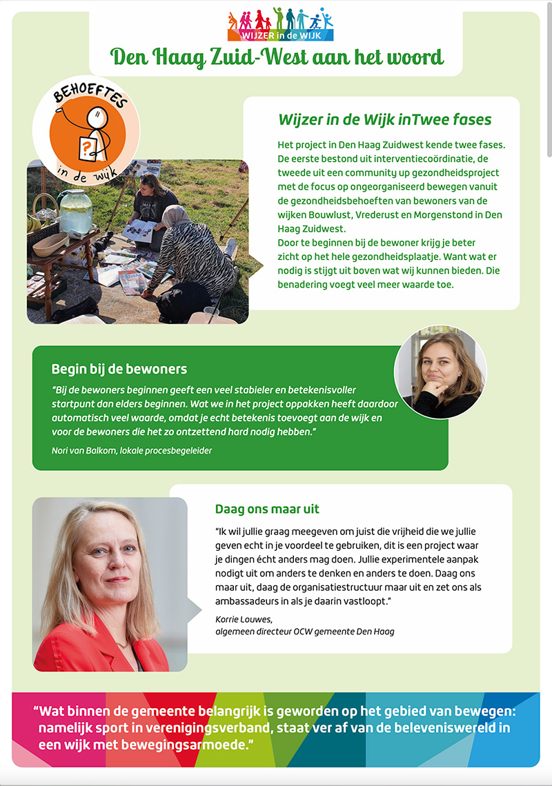 Onderstaande factsheets reflecteren op de uitkomsten en opbrengsten van fase 2 van Wijzer in de Wijk, voor elk van de wijken.