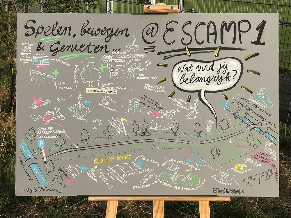 Deze wensen zijn nu gekoppeld aan de herontwikkeling van een sportpark in de wijk. Voor de stroken grond rondom de sportvelden worden allerlei sportieve en recreatiemogelijkheden bedacht met en door bewoners. Met de kinderen worden ontwerpen gemaakt voor uitdagender speelterreinen en zo zijn er nog een aantal concrete ontwikkelingen gestart. Met subsidie van de provincie erbij is ondertussen een goed budget gecreëerd.
